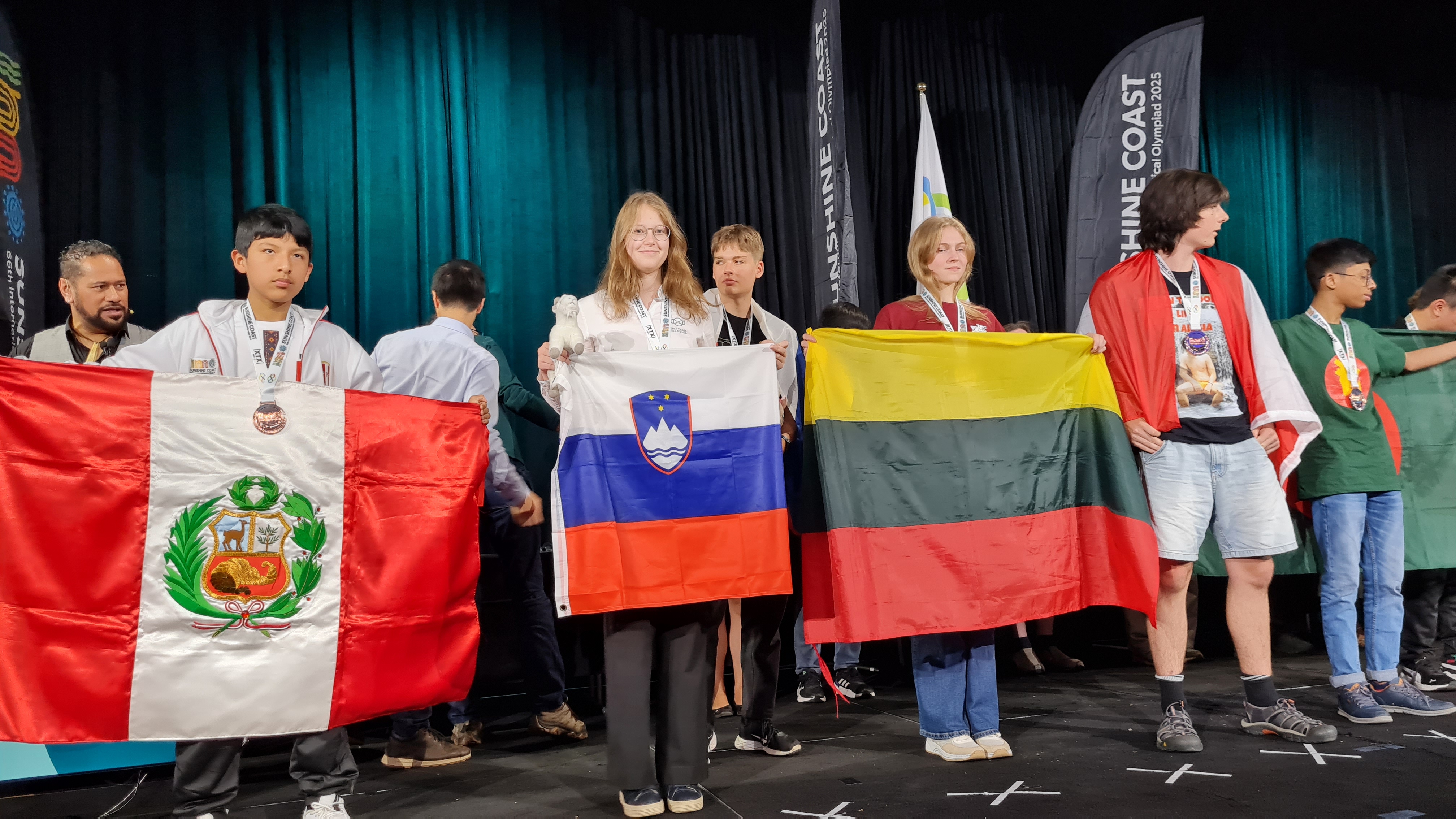 Na 66. Mednarodni matematični olimpijadi, ki je potekala od 13. do 20. julija 2025 v mestu Sunshine Coast blizu Brisbana v Avstraliji, sta Žiga Oštir in Patricia Király osvojila bronasti medalji, vsi ostali člani ekipe Taras Vuk, Ekaterina Chizhova, Nace Hranjec in Andraž Čadež pa se domov vračajo s pohvalami. V tokratni ekipi je bilo kar pet tekmovalcev z Gimnazije Bežigrad, edino Nace je z Gimnazije Ravne. Uspešne celoletne priprave naše ekipe je vodil Luka Horjak, ki je poleg Gregorja Dolinarja spremljal tekmovalce v Avstraliji. Na največji olimpijadi v znanju je letos sodelovalo 630 tekmovalcev in tekmovalk iz 110 držav, prvič je sodeloval Katar, najuspešnejša pa je bila ponovno Kitajska.