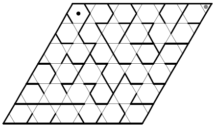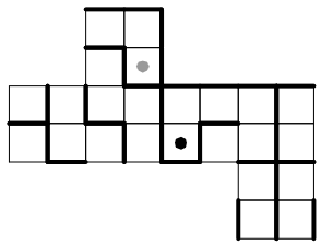 Poveži piki na labirintu z neprekinjeno črto. Pri tem ne smeš preko debelih črt, preko vsakega polja pa greš lahko največ enkrat.