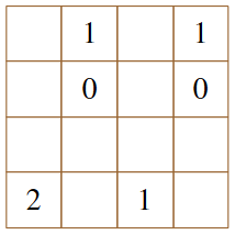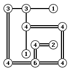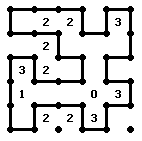 Narisati je treba črte med pikicami tako, da dobimo eno enostavno sklenjeno zanko. Števke ( 0, 1, 2, 3, 4) pa nam povejo, koliko črtic jih obdaja.