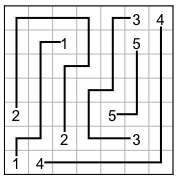 Z lomljenimi črtami, ki se ne sekajo, je potrebno med seboj povezati enaki števili (lika). S črtami je potrebno zapolniti cel pravokotnik, črte pa ne smejo imeti odvečnih zavojev (tj. če skozi sosednji dve polji poteka črta, ki povezuje enaki števili, potem sta ti dve polji s črto neposredno povezani).